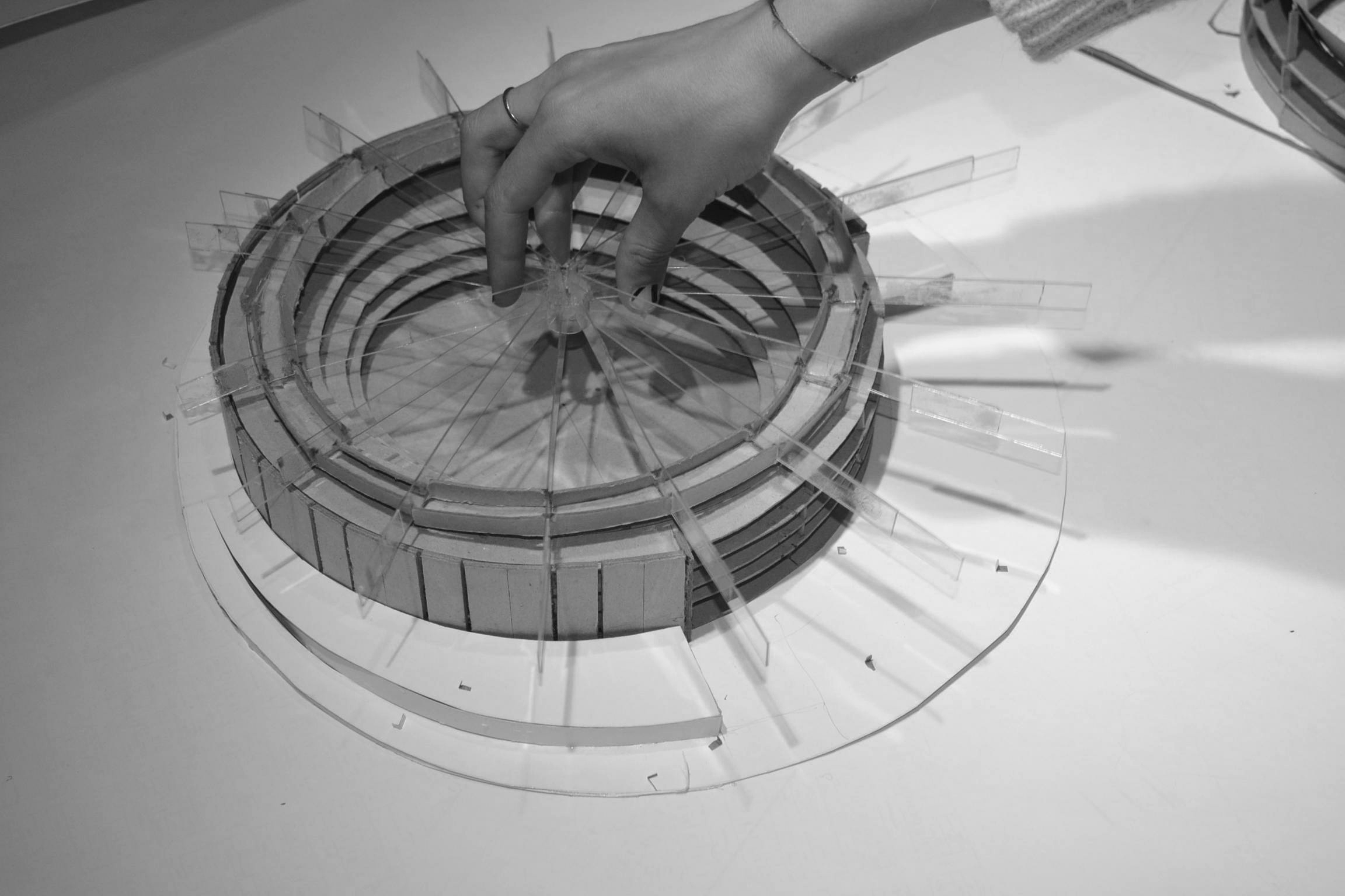 Reconocemos en el cilindro preexistente la eximia obra de ingeniería nacional, pionera estructura postensada del Ing. Leonel Viera que nos colocó en un sitial de privilegio en el ámbito internacional. Es este “Cilindro” teñido de áurea histórica en una ciudad joven como Montevideo, generador de un profundo sentido de pertenencia. Integra el acotado universo de obras privilegiadas de nuestra ciudad, que con sólo nombrarlas son reconocidas en el devenir de la historia personal y popular. Es esta una condición ineludible de la reflexión arquitectónica y urbana, el genius loci que gana su derecho de estar por la historia, al margen del valor económico que la rotonda de hormigón tiene.